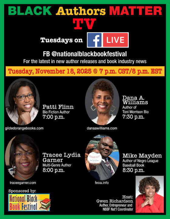 You don’t want to miss being part of this innovative platform that features new author releases and the latest book industry news. On Tuesdays from 7:00 to 9:00 p.m. CST Black Authors Matter TV features authors and industry experts that are making a difference in African-American literature. One-on-one interviews are conducted via Zoom and streamed live on the National Black Book Festival’s Facebook page with 100K+ followers. The show is also available on the top six podcast platforms, including Spotify, Apple, Amazon, and Google.