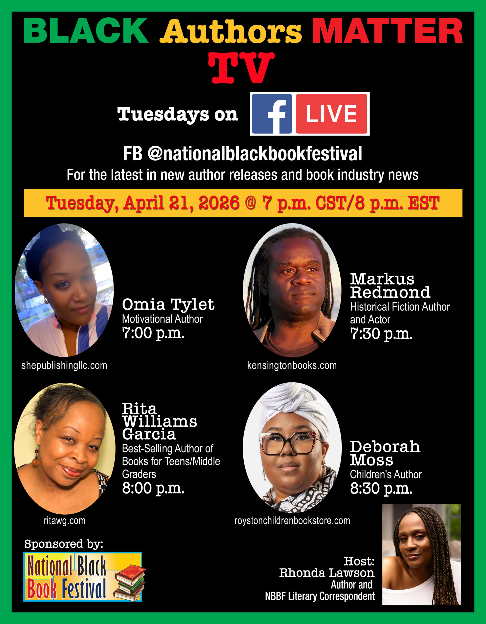 Black Authors Matter TV – April 21st Guests: Omia Tylet, Markus Redmond, Rita Williams Garcia, Deborah Moss